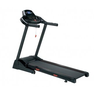 DFC M-680 беговая дорожка,двигатель 1,5 л/с, скорость 1-18 км/ч, 5" LCD дисплей: скорость, время, дистанция, калории, измерение пульса, 99 программ, встроенные колонки, подключение МР3, размер бегового полотна 450 х 1300 мм, вес: 57 кг, максимальный вес пользователя 120 кг.
