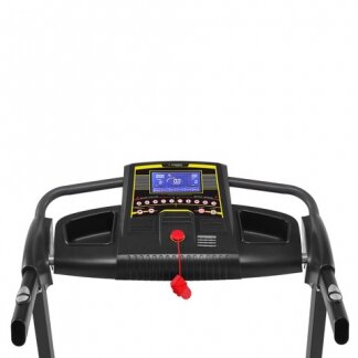 Консоль дорожки оснащена большим LCD дисплеем, на экран выводятся все возможные параметры тренировки, включая профиль выполняемой программы. В программный пакет включены 12 предустановленных программ. Контактные датчики на рукоятках выводят показания пульса на экран. Система амортизации на основе 6 эластомеров снижает нагрузку на позвоночник и суставы. Гидравлическая система складывания существенно облегчает складывание дорожки, а при раскладывании обеспечивает медленное опускание полотна в последней фазе, гарантируя легкость и безопасность.