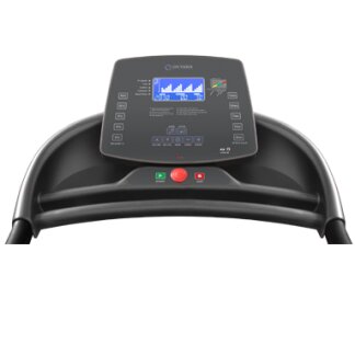 Тренировочный компьютер оснащен голубым дисплеем диагональю 5.5 дюйма (14.2 см.) с отображением программных профилей. В число самих программ входят 18 режимов, направленных на решение самого широкого спектра задач – от развития силы и выносливости до снижения веса и улучшения сердечно-сосудистой системы. Помимо предустановленных программ, можно воспользоваться самостоятельно регулируемым ручным режимом, а также создать собственную программу в одном из 4-х пользовательских режимов. Есть здесь и 2 пульсозависимые программы с предустановленными значениями 65% либо 85% от целевого максимального пульса. Для точного определения пульса и просто комфортной тренировки в компьютер встроен высокоточный беспроводной приемник. Гидравлическая система складывания easyFOLD™ значительно облегчает складывание дорожки, а при раскладывании обеспечивает медленное опускание полотна в последней фазе, гарантируя легкость и безопасность. На поручнях находятся сенсорные датчики пульса и "быстрые" кнопки изменения скорости и угла наклона. Диапазон угла наклона составляет 0 - 18% и регулируется электрически. Мультимедийные возможности представлены динамиками мощностью 5 Ватт и входом Audio IN для воспроизведения аудио файлов от подключаемых MP3 плееров и мобильных устройств.