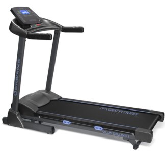 OXYGEN FITNESS™ VILLA DELUXE II ML HRC - премиальная домашняя беговая дорожка с максимальным весом пользователя 150 кг. В основе конструкции - особопрочная рама, проверенный временем двигатель японской Fuji Electric мощностью 2.8 л.с. в режиме постоянной нагрузки (или 5 л.с. пиковой мощности) и парафинированная двойная дека толщиной 20 мм. Большое беговое полотно с рабочей площадью 132*42 см. и скоростью до 16 км./ч. позволяет реализовать все основные задачи пользователя, включая тренировки на субмаксимальных скоростях. Диапазон угла наклона составляет 0 - 4% и регулируется механически. Высокопрочное многослойное полимерное полотно сложного плетения Habasit NVT-256 толщиной 1.6 мм. относится к классу коммерческих и рассчитано на напряженную многолетнюю эксплуатацию. Высококачественная амортизация настроена на средне-мягкий уровень жесткости и представлена двойной декой в сочетании с 4-мя динамическими подушками dualFLEX™.