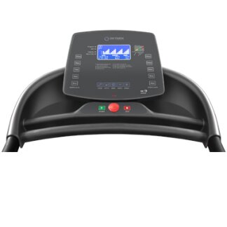 Тренировочный компьютер оснащен голубым дисплеем диагональю 5.5 дюйма (14.2 см.) с отображением программных профилей. В число самих программ входят 18 режимов, направленных на решение самого широкого спектра задач – от развития силы и выносливости до снижения веса и улучшения сердечно-сосудистой системы. Помимо предустановленных программ, можно воспользоваться самостоятельно регулируемым ручным режимом, а также создать собственную программу в одном из 4-х пользовательских режимов. Есть здесь и 2 пульсозависимые программы с предустановленными значениями 65% либо 85% от целевого максимального пульса. Для точного определения пульса и просто комфортной тренировки в компьютер встроен высокоточный беспроводной приемник. Гидравлическая система складывания easyFOLD™ значительно облегчает складывание дорожки, а при раскладывании обеспечивает медленное опускание полотна в последней фазе, гарантируя легкость и безопасность. На поручнях расположены сенсорные датчики пульса и "быстрые" кнопки запуска/остановки и изменения скорости. Мультимедийные возможности представлены динамиками мощностью 5 Ватт и входом Audio IN для воспроизведения аудио файлов от подключаемых MP3 плееров и мобильных устройств.